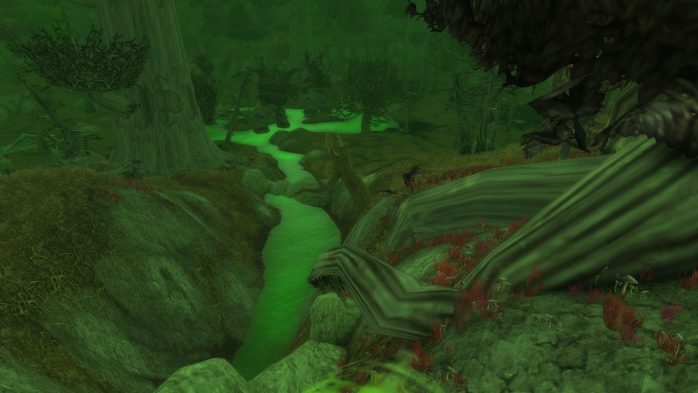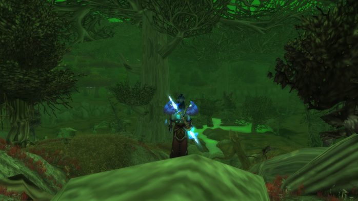 Pois é. Acho que não tem mesmo chance nessa vida de minha pessoa ficar contente num mapa monocromático. Aliás, Feralas está no topo da minha lista de lugares-aos-quais-irei-somente-quando-for-estritamente-necessário. Até a luz aqui é verde, Elune tenha piedade!