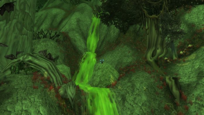 Ok, é uma cachoeira de fel verde-ácido, mas ainda assim estou serena. Claro que tem também os cogumelos esquisitos, as árvores mortas e essa aura de lugar decrépito cheio de bichos em decomposição. Ewwww.