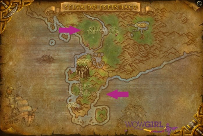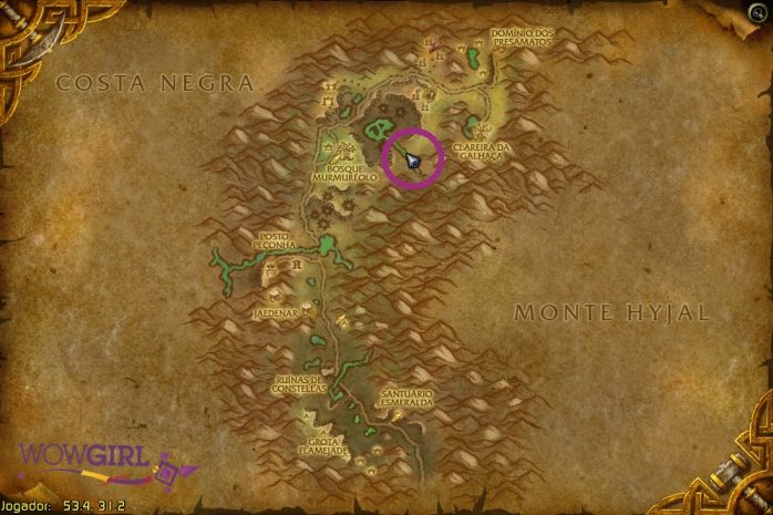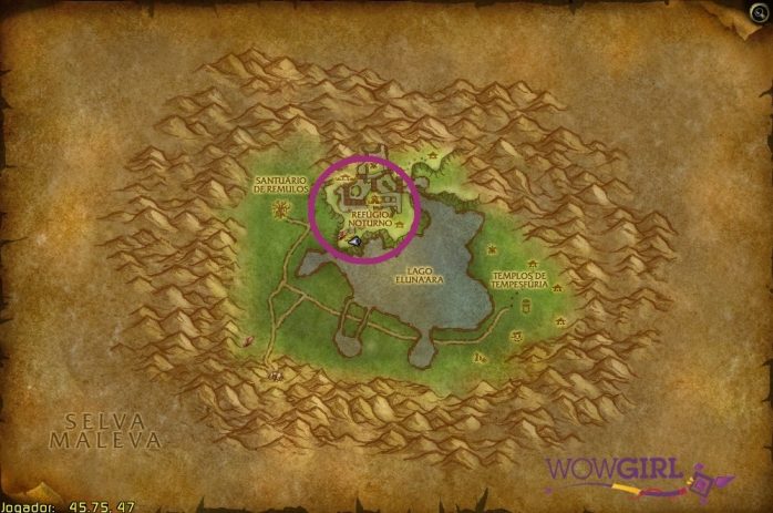Voltemos para o norte de Kalimdor, que é onde fica a Selva Maleva. O mapa faz fronteira com Costa Negra, Clareira da Lua, Hibérnia, Monte Hyjal e Vale Gris (ufa!) e só possui um destino.