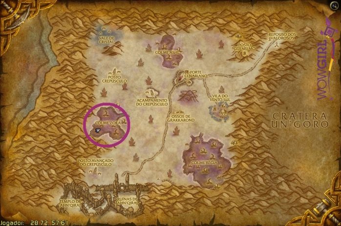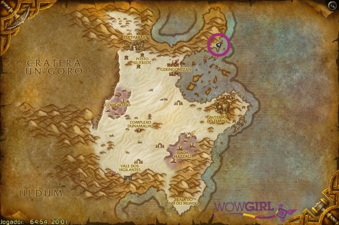 A Cratera Un’Goro fica ao sul de Kalimdor, exatamente entre Tanaris, Uldum, Silithus e Mil Agulhas. Também só há um destino aqui.