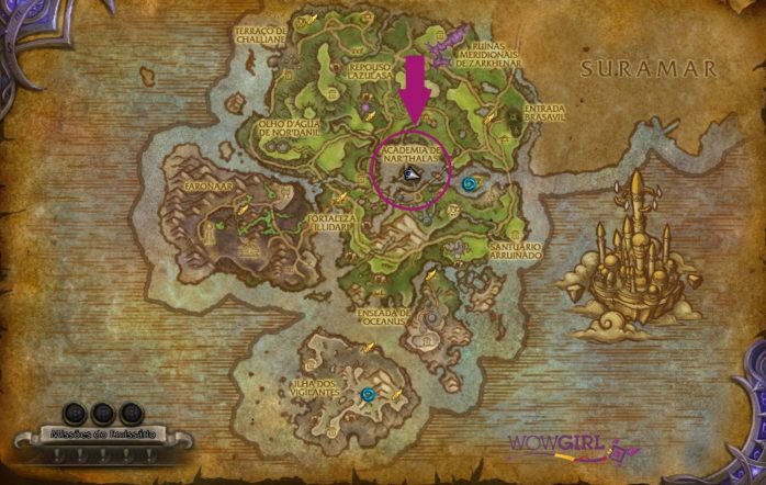 Para conseguir seu título, primeiro você necessita obter a Chave da Academia de Nar’thalas, que lhe dará acesso a uma versão perdida no tempo da Academia de Nar’thalas, em Aszuna (um local pelo qual passamos durante a campanha do mapa).