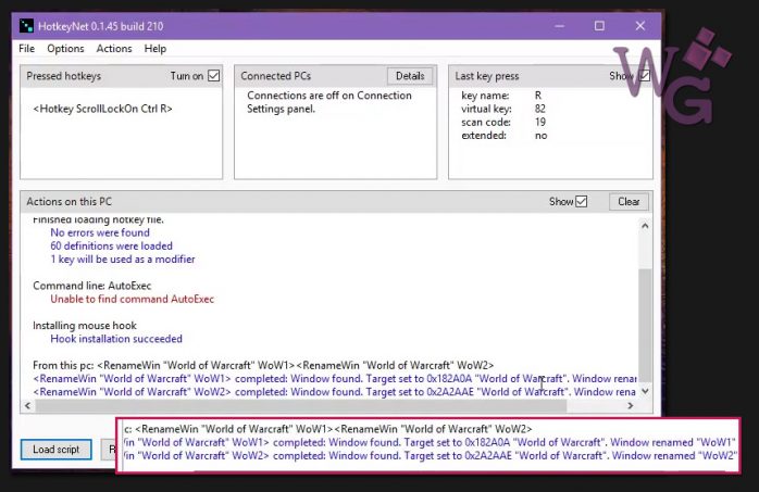 A partir deste momento, o HotkeyNet estará ativo enquanto ambas instâncias do WoW e ele estiverem abertos. Com isso, toda ação que fizer em uma das janelas será replicada nas demais enquanto o botão Scroll Lock de seu teclado estiver ativo. Lembre-se que caso você tenha mudado a tecla de ativação de Scroll Lock para outra, esta será sua tecla de referência para ativar o HotkeyNet.