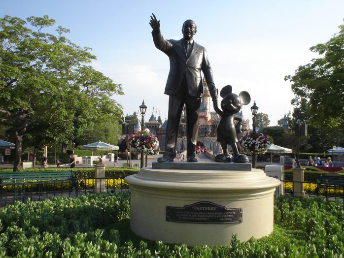 Pra quem ainda não sacou, a estátua faz uma referência a uma já bastante conhecida: a estátua de Walt Disney que fica no Magic Kingdom (um dos parques temáticos da Disneylândia). Nessa estátua Walt Disney segura a mão de Mickey, a mesma pose que podemos ver acima de Chris Metzen e o fofíssimo Winston bebezinho, confira a semelhança na foto abaixo: