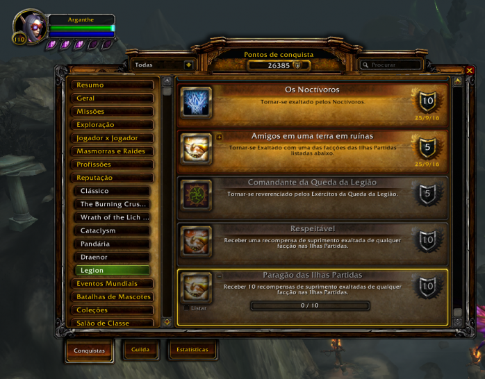 Paragão das Ilhas Partidas (Paragon of the Broken Isles): Receber 10 das recompensas de Reputação Paragon.