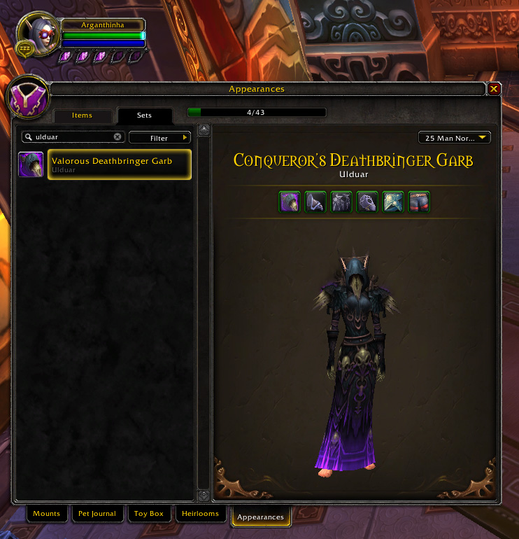 - Você agora pode pesquisar por uma coleção de aparência utilizando o nome da masmorra/raide ou nome do chefe.