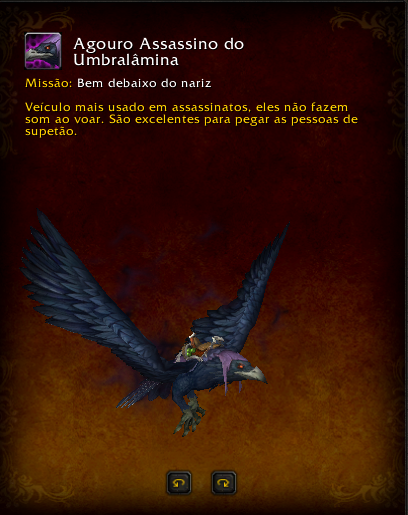 Eu achei essa montaria uma das mais bonitas (se não for a MAIS bonita, me julguem). Nossos amiguinhos ladinos vão ter um pouco de trabalho para conseguir as 4, mas certamente será muito recompensador desfilar com elas por Dalaran (ÇOCORRO trailer do novo patch) e pelas Ilhas Partidas. 🙂