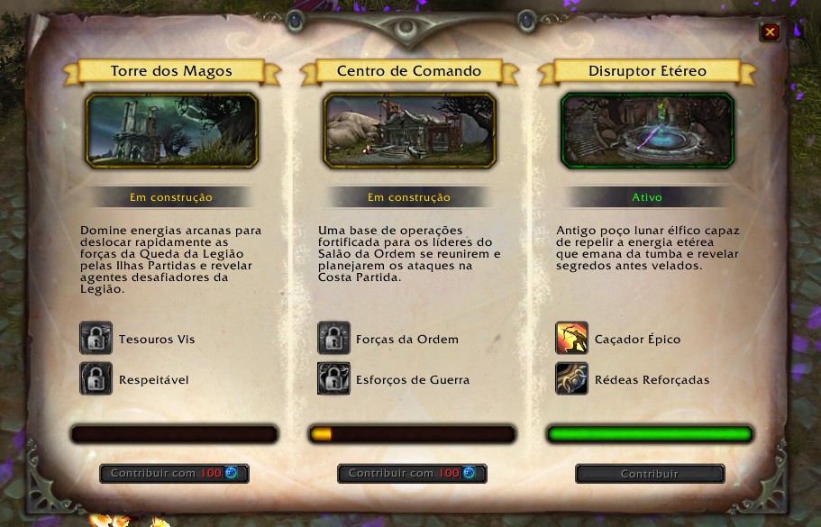 Após o cenário introdutório da Costa Partida e início das missões no local você poderá contribuir com recursos para construção de três diferentes prédios: Torre dos Magos, Centro de Comando e Disruptor Etéreo.