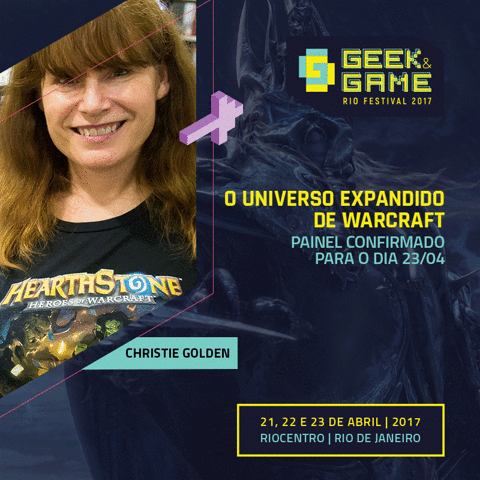 Entre as atrações está um painel com Christie Golden e Gustavo Nader, mediado por mim <3