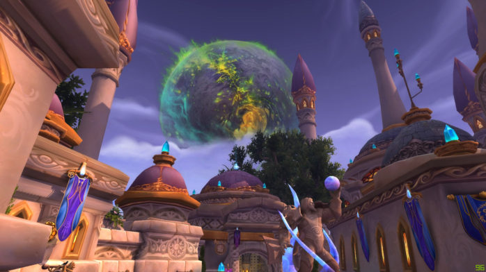 Só que tudo tem um preço. Illidan nos salvou, mas o buraco não fechou… E Argus agora pode ser vista em Azeroth. Sim, depois da primeira kill do Kil’jaeden, Argus poderá ser vista do céu em todos os pontos principais de Azeroth!