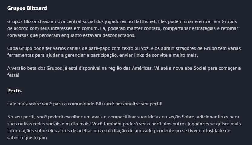 Além dessa novidade também temos a opção de criação de grupos, como canais particulares, e um perfil – você pode preencher seu perfil com links pessoais, um texto personalizado, além de links pra seus perfis em cada jogo e a escolha de um avatar, que pode ser escolhido entre vários personagens dos jogos da empresa.