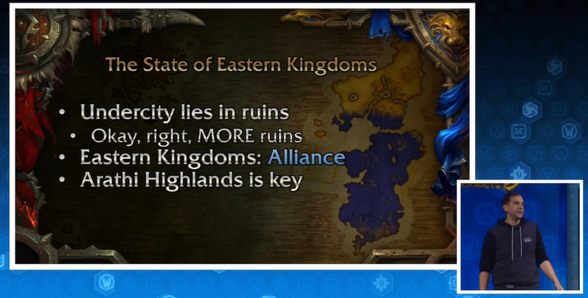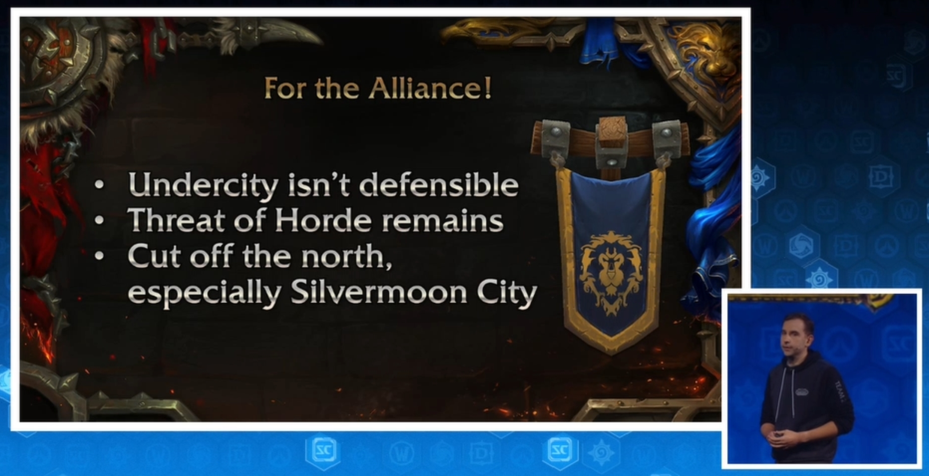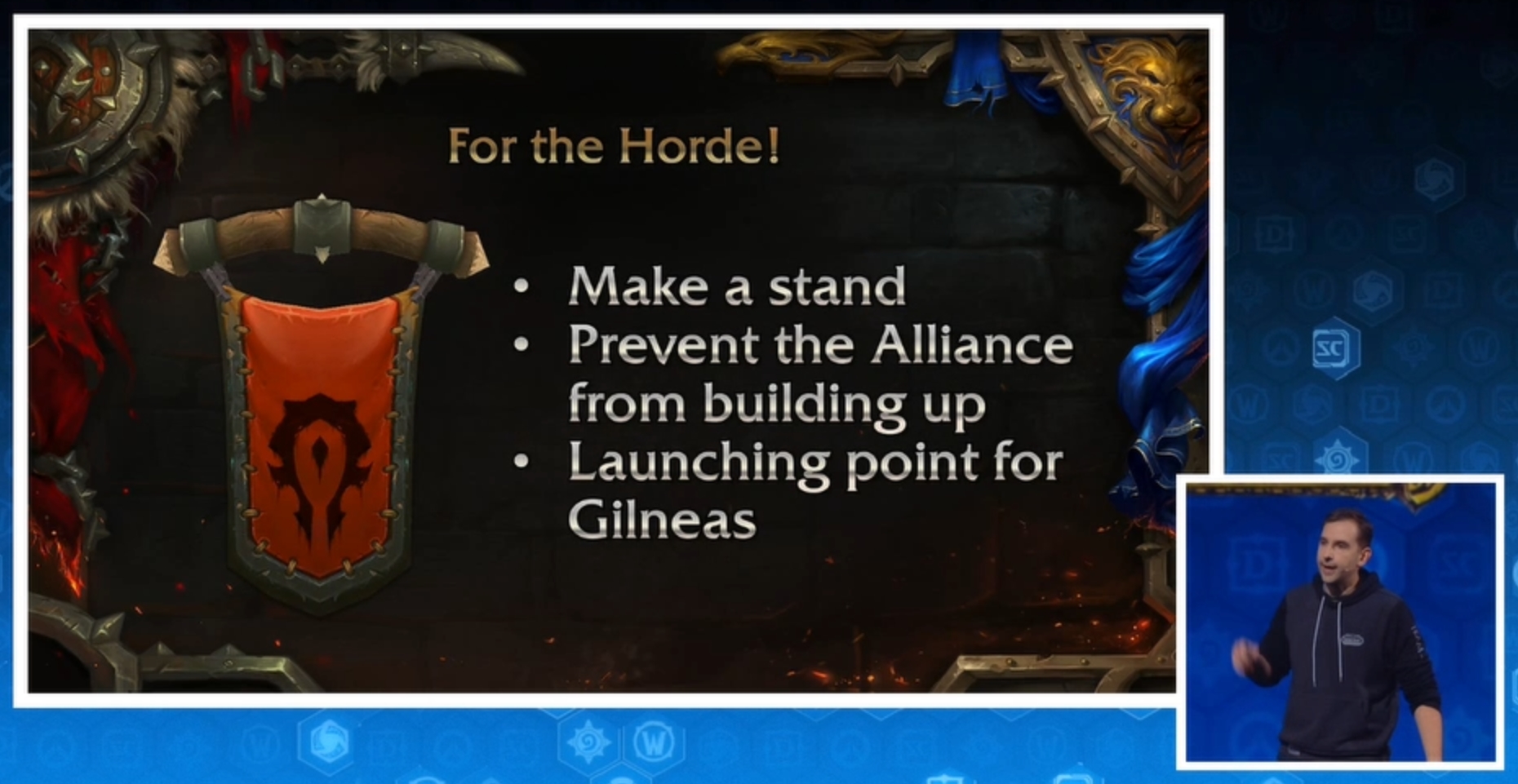 O primeiro cenário dos Frontes de Guerra será Stromgarde, um antigo reino humano, que vai ter seu modelo atualizado. Para a Aliança, que tem como objetivo dominar todos os Reinos do Leste, Cidade Baixa não é um ponto seguro – pois mesmo em ruínas não pode ser defendida, e existem resquícios da Horda por lá, o forte é o ponto de partida para a conclusão da conquista do continente. Para a Horda, Stromgarde é um bom ponto de partida para a conquista de Gilneas, e para impedir que a Aliança continue seu avanço pelo continente. Logo, é nesse local estratégico que a batalha vai acontecer.