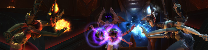 - Consumir Esfera (Shatug 33 de Energia) + Incendiar Corrupção (F’harg 100 de Energia): É importante já ficar pré-separado antes da habilidade acontecer, e usar habilidades que aumentam sua velocidade de movimento/blinks para manter-se separado durante o puxão.