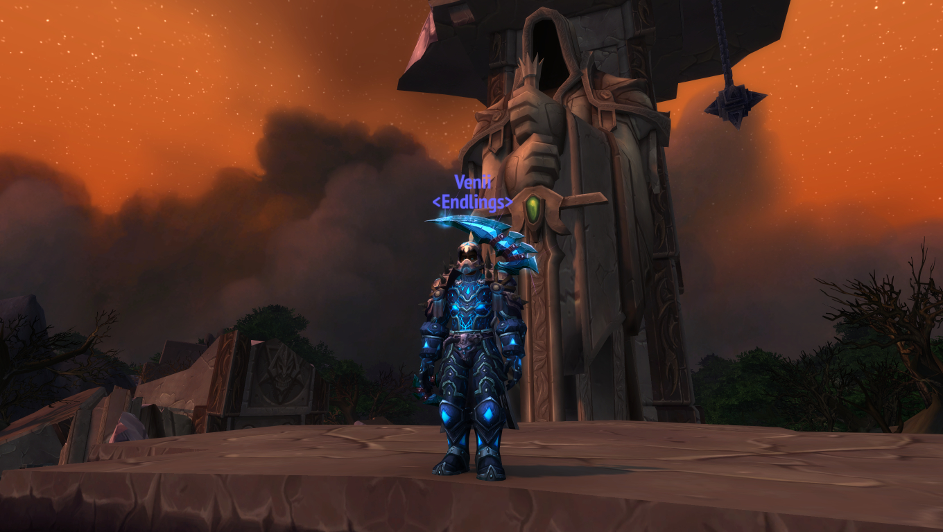 Conjuntos: Magma Plated Battlearmor (Recolor) com o Relentless Gladiator’s Desecration.