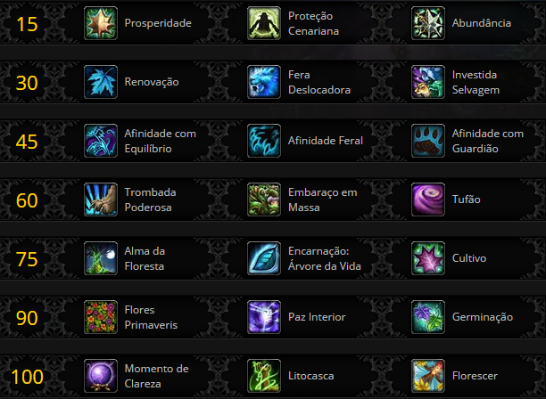 Neste capítulo apresentaremos os talentos mais viáveis para os Druidas Restauração.
