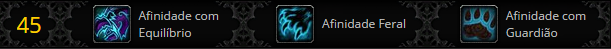 - Afinidade Feral proporciona a habilidade passiva Rapidez Felina, que aumenta sua velocidade de movimento em 15%. Você também ganha: Despedaçar, Estraçalhar, Rasgar, Mordida Feroz e Patada.