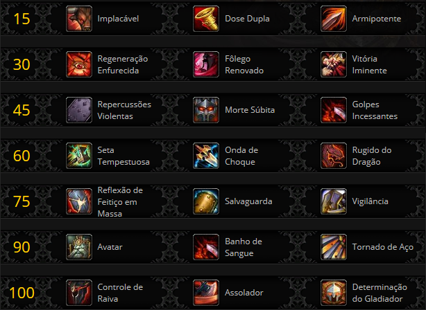 Implacável proporciona a melhor regeneração de Raiva se você conseguir usar Investida com frequência. É ótima em lutas nas quais você precisa puxar um add extra.