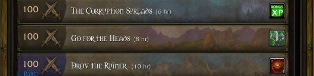 - Missões raras são disponibilizadas de acordo com o nível do jogador, e dão como recompensa equipamentos de nível apropriado. Por exemplo, missões de nível 92 dão como recompensa equipamentos de nível 540 (Dumb and Dumber), missões de nível 95 dão como recompensa equipamentos de nível 570 (Demonic Retribution).