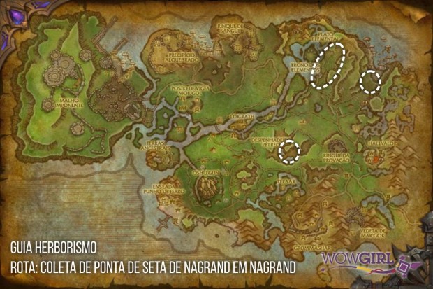 Dica: Em Gorgrond, as plantas estão localizadas na parte inferior do mapa. Em Ashran também, à exceção da região montanhosa ao leste do mapa.