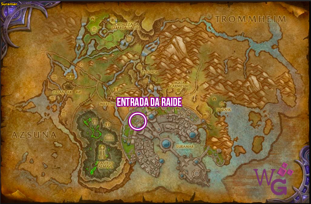 Para chegar facilmente na porta da Raide, vá para Shal’aran e pegue o portal para o Sacrário da Ordem.