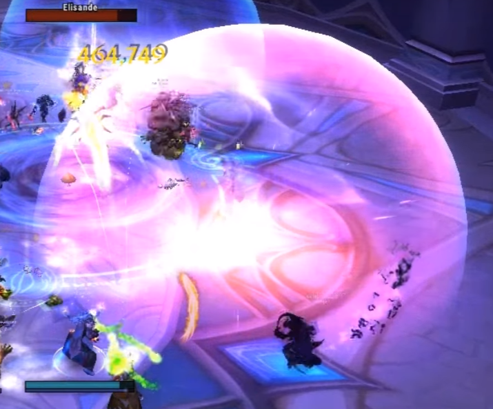 Os Tanks e DPS corpo-a-corpo devem tomar cuidado logo que Elisande for puxada, pois ela usará Deixar Nascente da Noite instantaneamente e causará bastante dano ao seu redor. Eu recomendo iniciar a luta com a Sede de Sangue/Distorção Temporal/Heroísmo e usar o máximo possível de bolhas de Tempo Acelerado para maximizar seu DPS nessa fase. Isso fará com que ela lance o mínimo possível de Anel Arcanético e Singularidade Expansiva, que são duas habilidades incrivelmente chatas nas fases subsequentes. Lembre-se de não esgotar totalmente as bolhas, pois você deverá usá-las para escapar do Anel Arcanético. Posicione-se atrás de uma bolha de Tempo Desacelerado quando o Anel estiver se fechando, ou perto de uma bolha de Tempo Acelerado, pois eles criarão “falhas” no anel que você pode usar para desviar da habilidade.