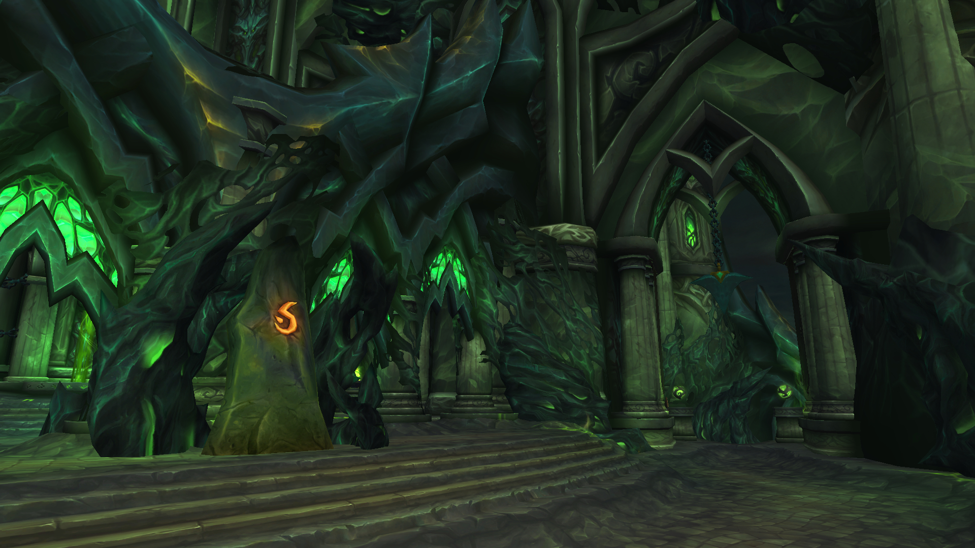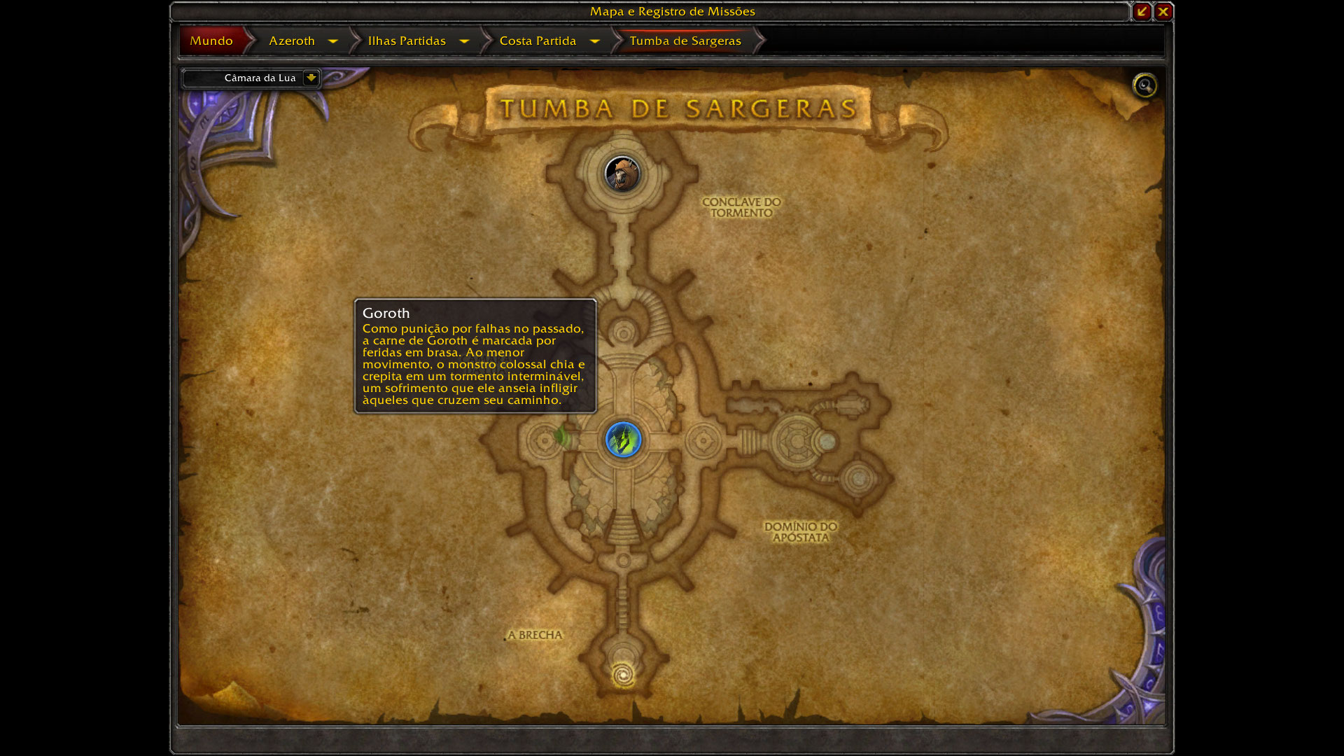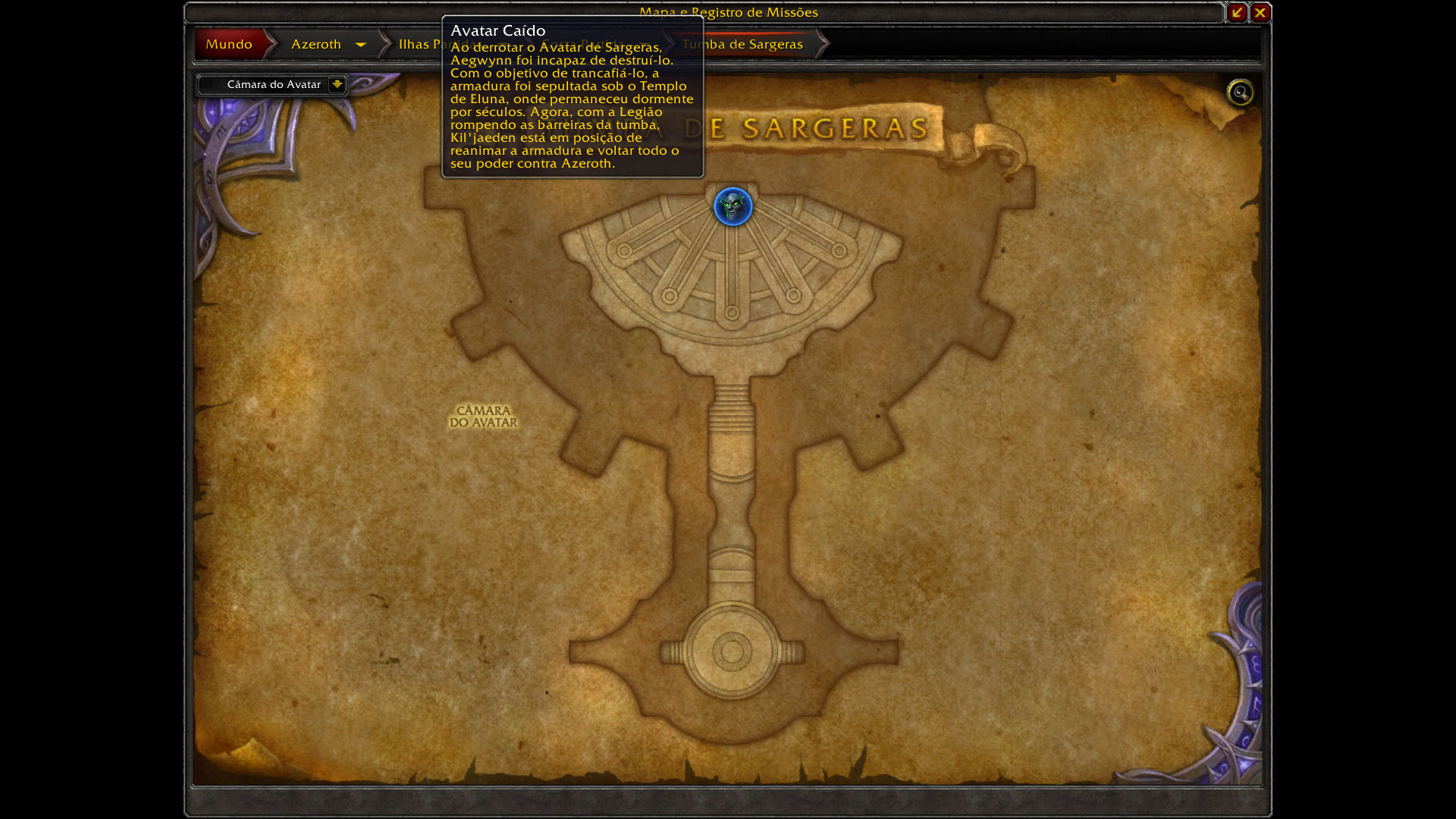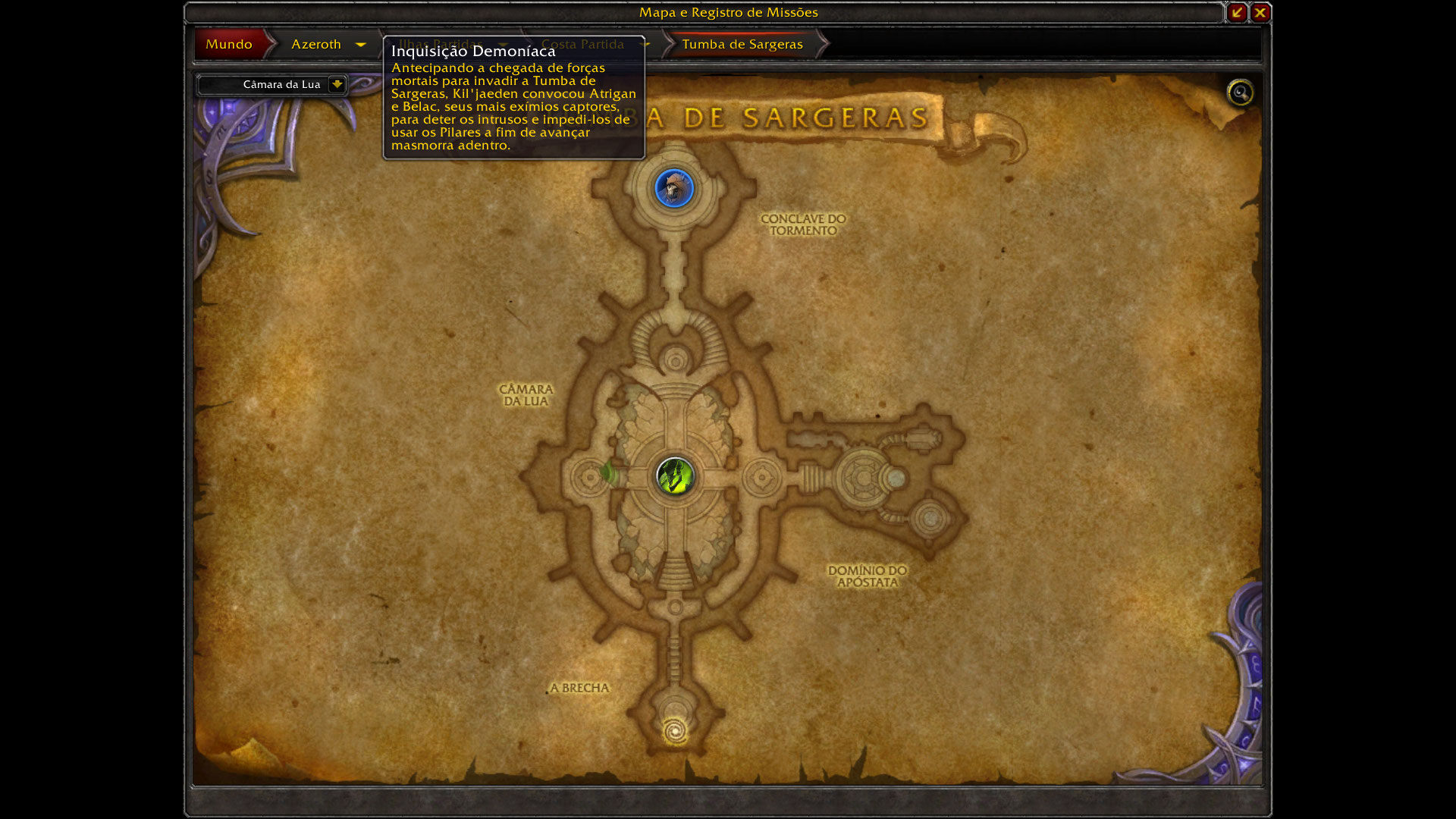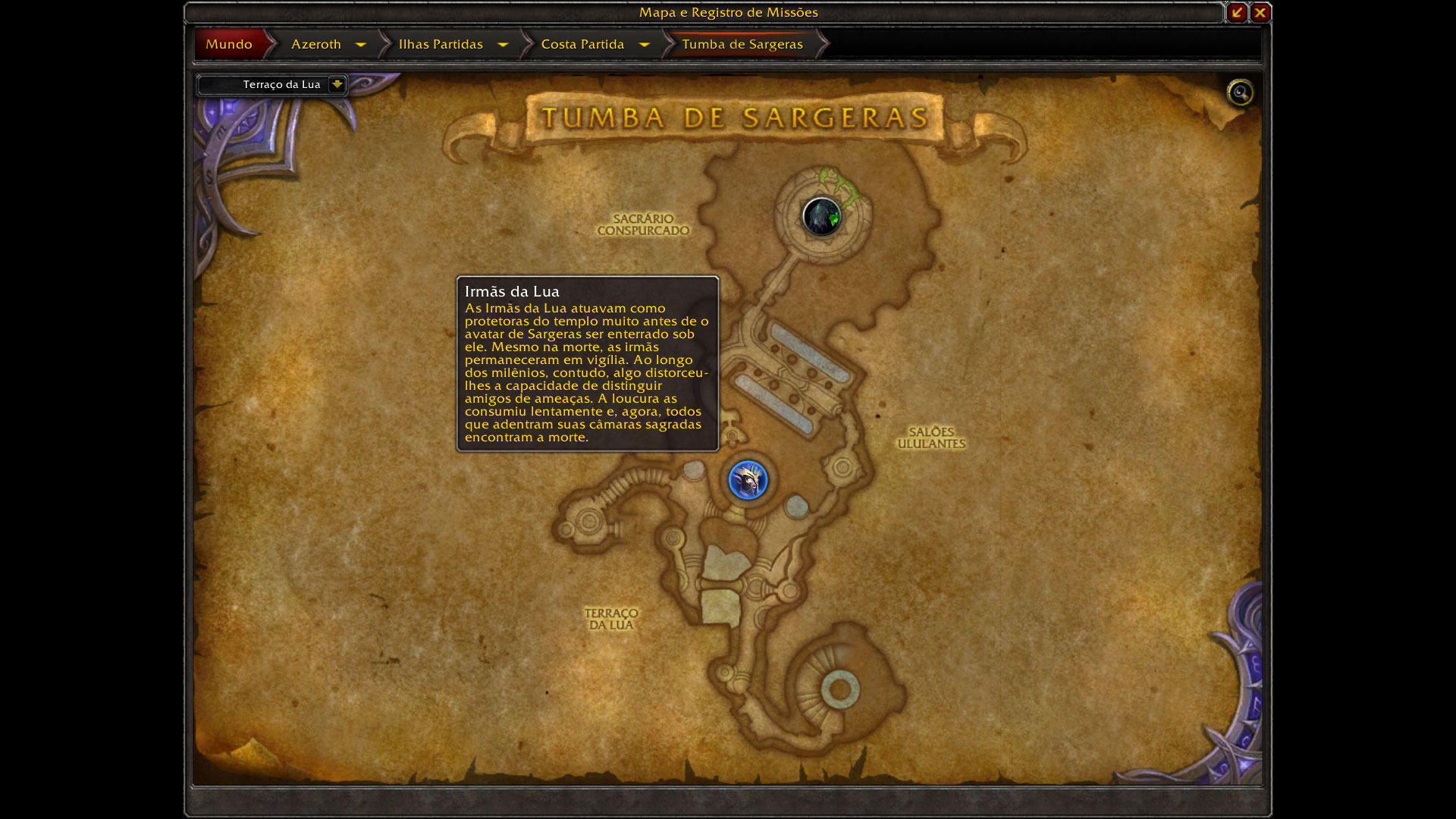 Foi neste templo de Eluna que Aegwynn trancafiou o avatar derrotado de Sargeras. Ela esperava que, enterrado nos profundezas da terra, ele permanecesse adormecido, mas o poder seduzia e atraía as mais abjetas entidades para este local. Ao readentrar a tumba, Gul’dan desfez as proteções de Aegwynn e abriu uma passagem para a invasão da Legião. Agora, o exército vil está em vias de irromper na câmara, esperando retomar o poder de seu mestre.
