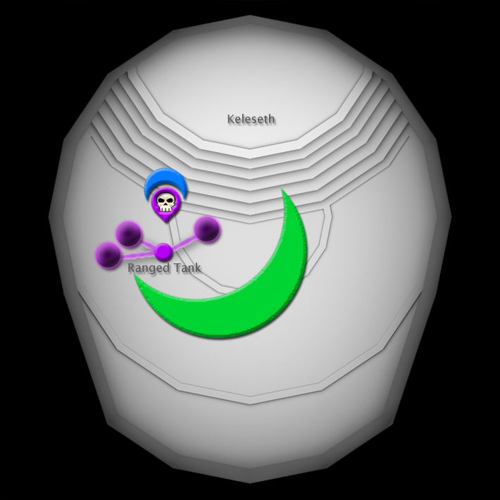 No Keleseth, o tank ranged precisa pegar o máximo de threat e pegar os Dark Nucleus em volta da sala. Ao longo da luta, os Núcleos dão dano a si mesmos então será preciso pegar mais. Assim o ranged tank sempre deve ter mais que 3 Núcleos. Eles reduzem o Shadow Damage que o ranged tank leva. Isso é necessário pra sobreviver Empowered Shadow Lance usado quado ele tiver o Invocation of Blood.