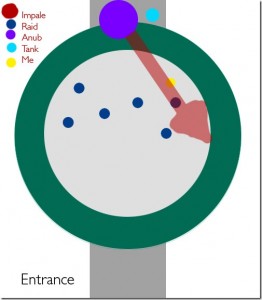 Anub’Rekhan dá knock back, então o MT tem que colocá-lo na posição correta contra o cantinho da parede (veja imagem)