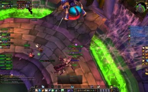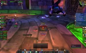 Na imagem abaixo, a seta vermelha mostra impale atingindo players. Impale da hit de 4813 a 6187. Não tem como resistir, e a forma de minimizar isso é manter-se espalhado na linha de frente do Anub’Rekhan.