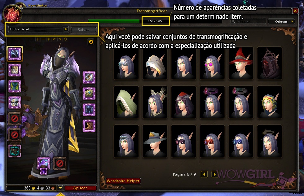 Com as múltiplas possibilidades de transmogs vinculados à conta, a interface de transmogrificação também foi modificada. Ela inclui as novas opções, bem como algumas utilidades super interessantes. Confira: