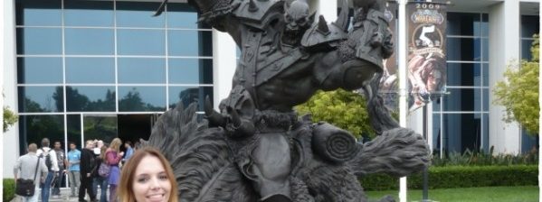 No primeiro dia, corri pra pegar um bom lugar no evento de abertura. O centro de convenções é muito grande e até se deslocar de um pavilhão pra outro, demora um pouco. Muito legal o evento de abertura, o Metzen falando sobre os geeks. Logo em seguida fui dar uma volta para reconhecer o terreno. Como era no primeiro dia que rolava o concurso de fantasias os concorrentes ficam andando no meio da multidão ao longo de toda a convenção, e tentei tirar fotos de todos! Postarei em breve! A partir da saída do salão principal comecei a investigar tudo! Uma estátua gigante do Thrall iluminada e colorida! Igual à estátua que estava na porta da Blizzard. Seguindo o fluxo, vinha o pavilhão de Diablo 3. Ali a fila era gigante! Muitos queriam experimentar o novo jogo e a classe que tinha acabado de ser anunciada. Em frente, havia umas...
