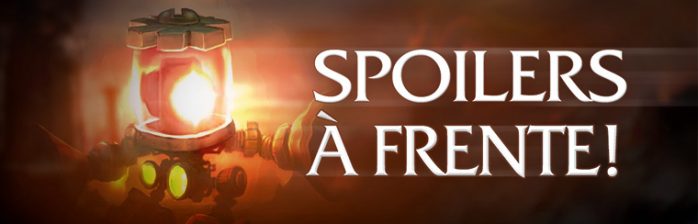 Ontem à noite a Blizzard divulgou na página oficial as cinematics de fechamento de todas as zonas de Draenor – e os vídeos contém muitos, muitos spoilers, como está bem enfatizado em cada vídeo 😛 O motivo da Blizz divulgar as cinematics oficialmente agora, é que como os arquivos já foram colocados no beta, eles iriam ser dataminados e publicados de qualquer forma – então eles decidiram fazer eles mesmos essa divulgação, e deixar os jogadores escolherem se querem ver ou não. A seguir, parte da mensagem do post oficial – é importante, leiam! – e logo depois, os vídeos de cada zona: Os vídeos contém um aviso de spoiler antes. Para assistir, caso queira, é só clicar em “Entendo os riscos”. E, em respeito aos amiguinhos que preferirem esperar, comentários contando/comentando explicitamente as cenas não serão aprovados. Portal Negro: Introdução Portal Negro: Epílogo Cinematic final de zona: Serra Fogofrio Cinematic...