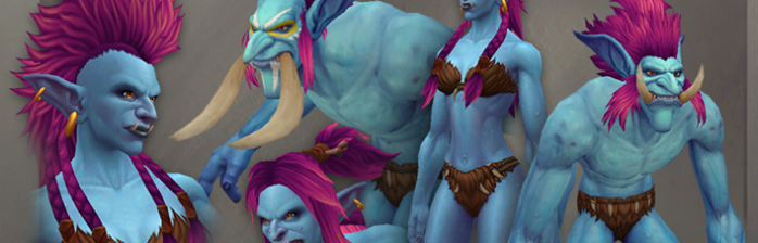 E finalmente saiu o modelo novo dos trolls! A gente conhece bem os modelos de troll, sabe que eles são bem sem graça e irregulares, são modelos bastante antigos (desde o WoW Vanilla!), e finalmente vão ter um modelo muito mais completo. O que eu reparei de novo: Músculos mais evidentes, preservaram muito das características atuais dos trolls, o que sinceramente gostei, já que manteve uma identificação forte com o modelo. Achei o rosto incrível, todas as expressões ferozes que as trolesas têm, e ao mesmo tempo o toque de sagacidade da raça ficou bem mais evidente. Vi muita gente falando que não viu tanta diferença, ou que podiam ter feito melhor, mas cá entre nós: Trolls são trolls. A raça é identificada por ser tribal, ou seja, têm corpo e mente fortes, as presas e o “ziriguidum” são partes fundamentais no modelo. Se você estava esperando que os trolls ficassem potato...