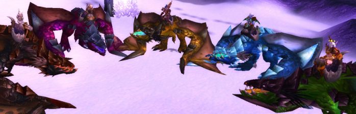 Rwarr Miuzinhos e Miuzetes! Como vocês estão nesses dias de calor nível “abraço do ragnaros”? Espero que sobrevivendo! 😀 Bom, muita gente não sabe, mas hoje é meu aniversário!! Yaaaay~ E para comemorar, nada melhor do que um post especial sobre minhas montarias favoritas do jogo: Protodracos! Existem 10 deles de todas as cores, tamanhos, formatos e métodos de aquisição! Vamos lá conhecer cada um desses maravilindos dragões-anciões? :3 Protodraco Vermelho O Rédeas do protodraco Vermelho foi meu primeiro protodraco! Ele é recompensa da conquista A Glória do Herói, que nada mais é do que um conjunto de conquistas das masmorras do continente de Nortúndria. São elas: Essas conquistas podem ser concluídas facilmente por um grupo de jogadores a partir do nível 80 na dificuldade heróica das masmorras: Nexus, Oculus, Bastilha Utgarde, Azjol Nerub, Ahn’Kahet, Bastilha Drak’tharon, Castelo Violeta, Gundrak, Salões Rochosos, Salões Relampejantes e Expurgo de Stratholm. Protodraco Azul O Rédeas do protodraco Azul é adquirido por...