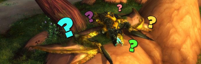 Rwar Miuzinhos e Miuzetes! Tudo bem com vocês? Espero que sim!! Hoje, ao invés de postar um guia, vou fazer um artigo um pouco diferente. Frequentemente, recebo perguntas relacionadas ao Protodraco Perdido no Tempo e questionamentos de “por que ele também está em Nagrand“. Para quem não conhece, o Protodraco Perdido no Tempo (também conhecido como Time-Lost Protodrake por seu nome em inglês) é um dos mais famosos monstros raros do jogo que dropa a montaria Rédeas do Protodraco Perdido no Tempo com 100% de chance. Por ser extremamente raro e garantir uma montaria no saque, muitos aventureiros tentam caçá-lo constantemente e acabou tornando-se bastante conhecido. Como vocês puderam conferir no guia, esse raro habita o mapa de Picos Tempestuosos, sendo uma aparição rara de outra criatura rara: a Viragosa. Porém, com o lançamento de Warlords of Draenor, muitas pessoas tem comentado sobre um corpo sem vida do Protodraco Perdido no Tempo na região nordeste de Nagrand, mais precisamente no Bosque perdido...